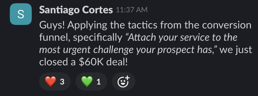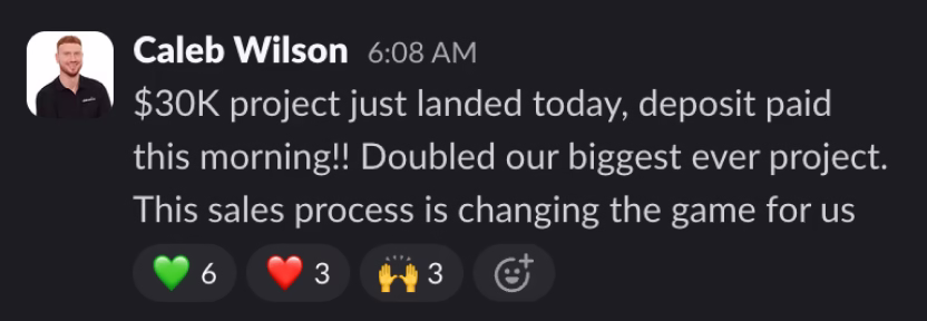 Since then, I've had a $50K+ month, closed a ~$75K LiveNation project, and most recently an ~$80K industrial job — and closing feels easier than ever."
